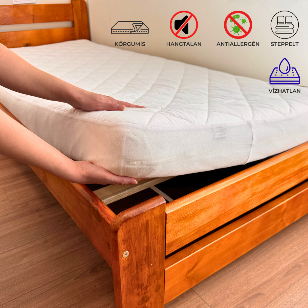 A körgumis kialakítás révén a matracvédő egyszerűen rögzíthető, és tökéletesen illeszkedik a matracra, még intenzív használat mellett is. Könnyen tisztítható és tartós, így hosszú távon is megőrzi minőségét.
